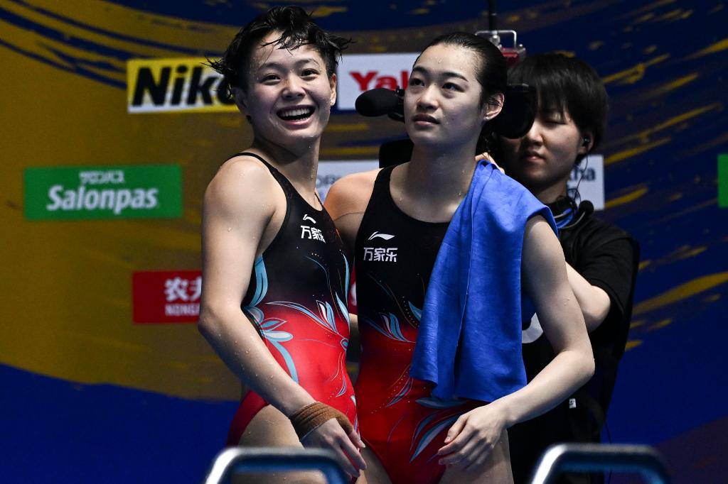 7月17日,陈艺文(左)/昌雅妮在女子双人3米板决赛后。新华社记者 许畅 摄